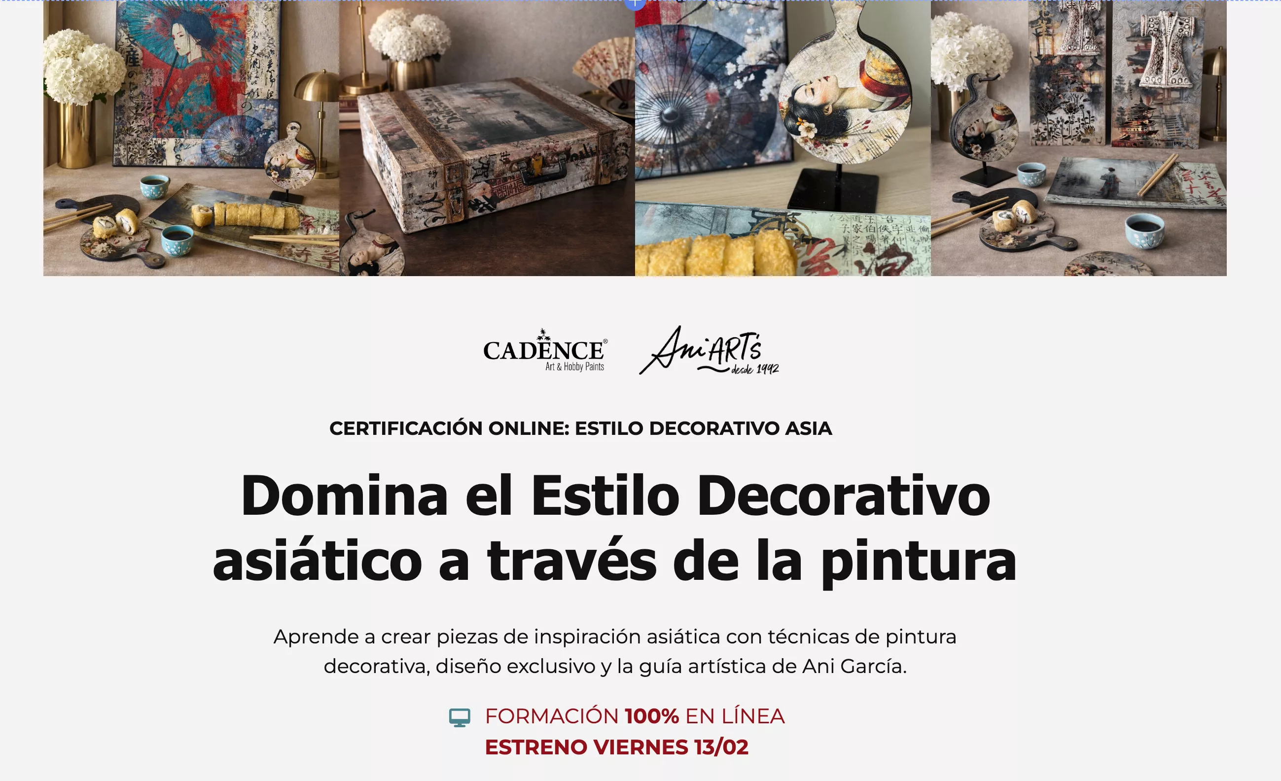 Aprende a crear piezas de inspiración asiática con técnicas de pintura decorativa, diseño exclusivo y la guía artística de Ani García.