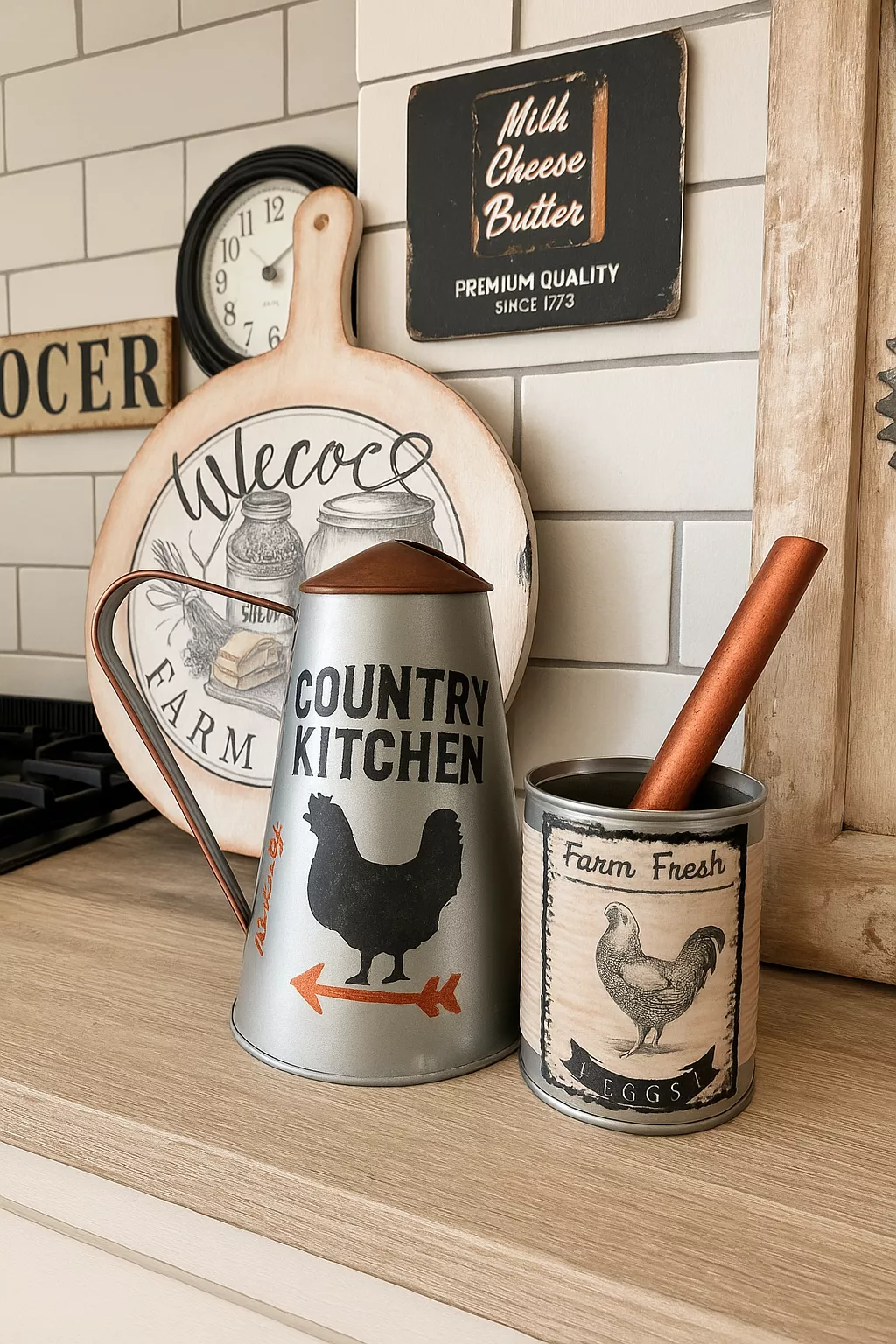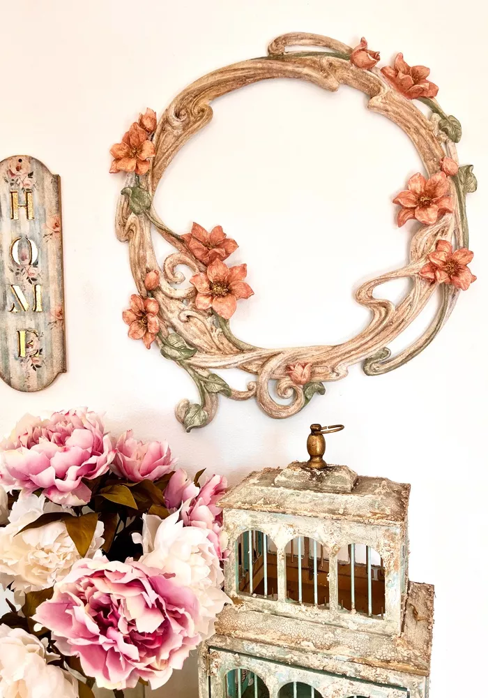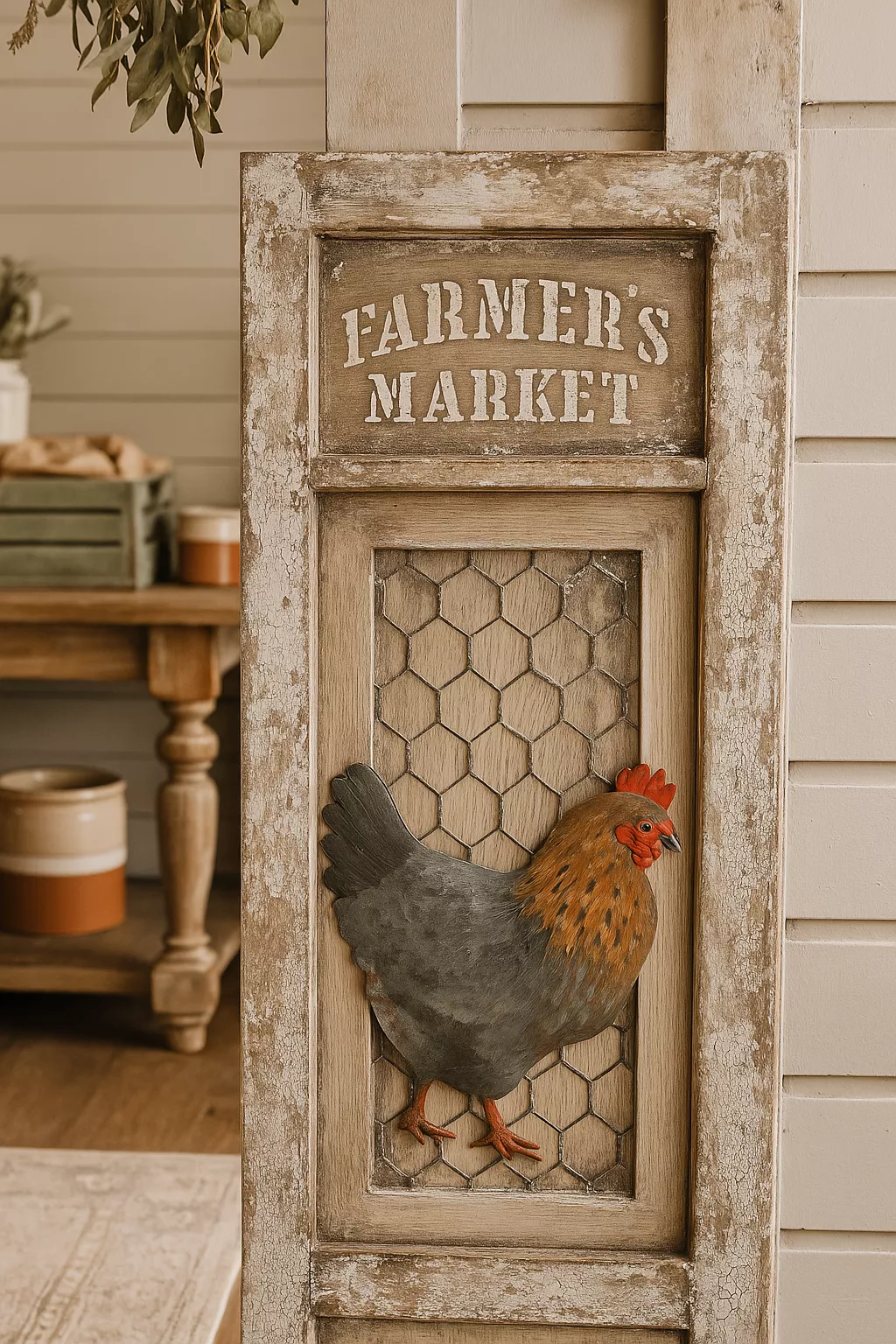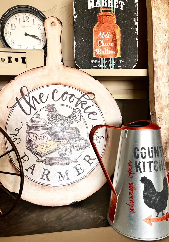 - Tabla decorativa estilo granja, Decoupage vintage y texturas rústicas con pastas decorativas.